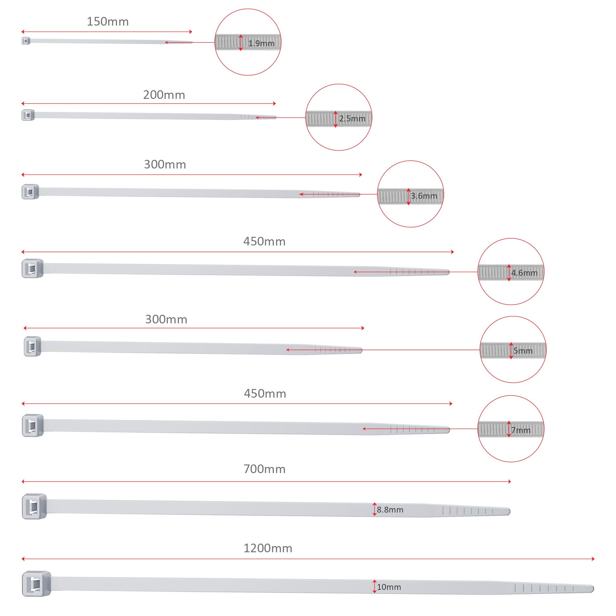 • Each pack of nylon ties comes with 100 pieces and the self-locking design ensures bundle wires are more tightly and ultra-strong secure.